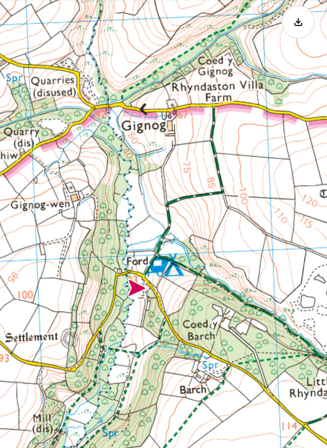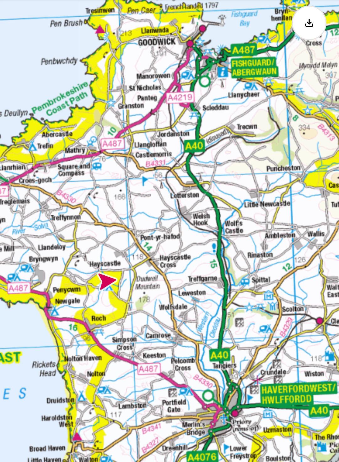 Don't approach from the North through the ford, you don't know how deep it is! So it's best to approach from Roch.As you come down the hill, there is a car park on the left, and at the far end of the car park there is the shop, family room, laundry and main toilet block .The track to the main camping fields is on the right of the road however, opposite the entrance to the car park. There are 2 camping fields, the Scout Field and the Riverside field. The pitches are numbered and are available unless a reservation notice is placed on them. So if you haven't booked, just choose a pitch that isn't reserved and contact us when you are able.